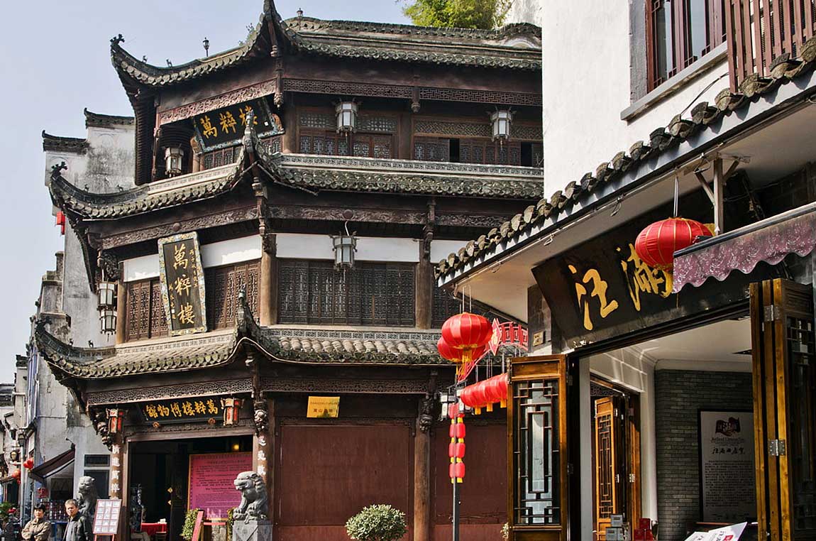 特別是老街兩側(cè)店鋪門(mén)楣上流光溢彩的金字招牌,古色古香,不少出自王朝聞、啟功、沈鵬、亞明、唐云、林散之、黃苗子、費(fèi)新我等書(shū)壇魁星之手,還有省內(nèi)名家和地方書(shū)法精英的墨跡?!叭俪廄S”擁有吳作人、沈鵬、羅工柳、劉炳森四位大師題寫(xiě)的匾額,可謂匠心獨(dú)具,體現(xiàn)了徽商講求仁德的“儒商”經(jīng)營(yíng)理念。