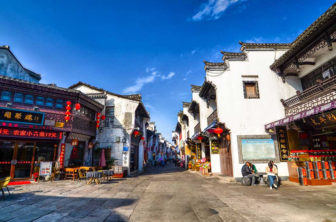 屯溪老街座落在安徽省黃山市屯溪區(qū)中心地段,北面依山,南面傍水,全長(zhǎng)1272米,精華部分853米,寬5至8米。包括1條直街、3條橫街和18條小巷,由不同年代建成的300余幢徽派建筑構(gòu)成的整個(gè)街巷,呈魚(yú)骨架形分布,西部狹窄、東部較寬。因屯溪老街坐落在橫江、率水和新安江三江匯流之處,所以又被稱為流動(dòng)的“清明上河圖”,是中國(guó)保存最完整、最具有南宋和明清建筑風(fēng)格的古代街市,也是中國(guó)“全國(guó)重點(diǎn)文物保護(hù)單位”。