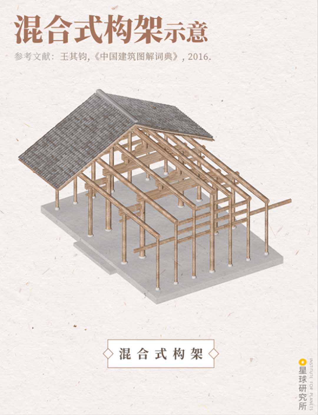 人們吸取兩方的優(yōu)勢,在廳堂等重要空間,以抬梁式構架為支撐,在兩側山墻、臥室等次要空間,替換為穿斗式構架,一種新型的建筑結構:“混合式構架”就此誕生!