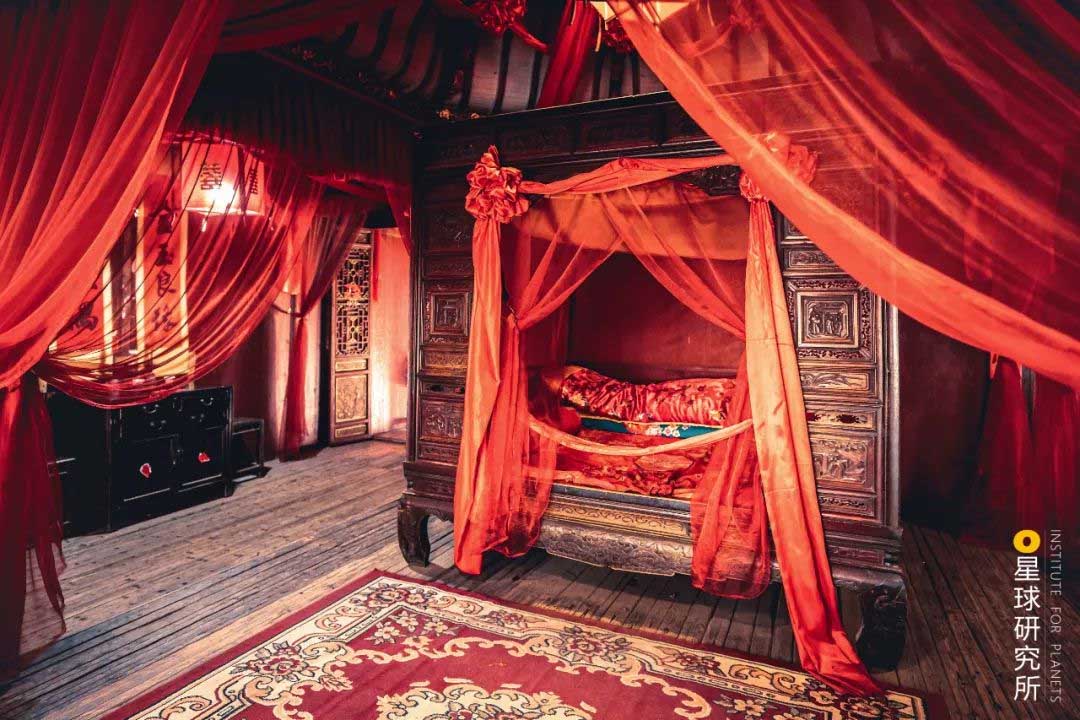(婺源篁嶺民居中的二樓臥室,被用作婚房,徽州民居其實經歷了一個漫長的形成過程,明代的民居二樓為廳堂,稱“樓上廳”,更多的保留了干欄式建筑的特色,清代的主要廳堂則由二樓轉移到一樓,攝影師@鄭哲文)
